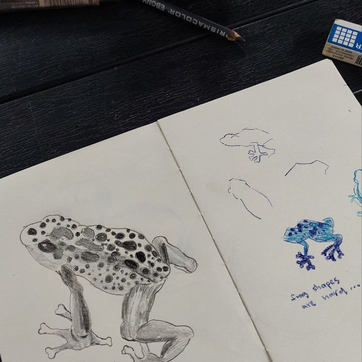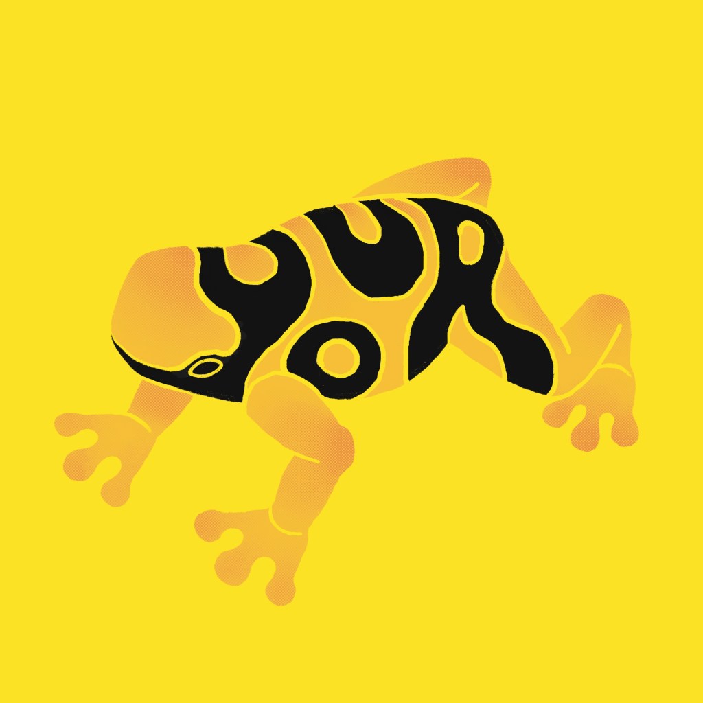 Starting with a sketch, then diving into some digital experimenting, I noticed some parts of the patterns on the frogs’ skin looked like letters, which inspired me to create some fun typography.